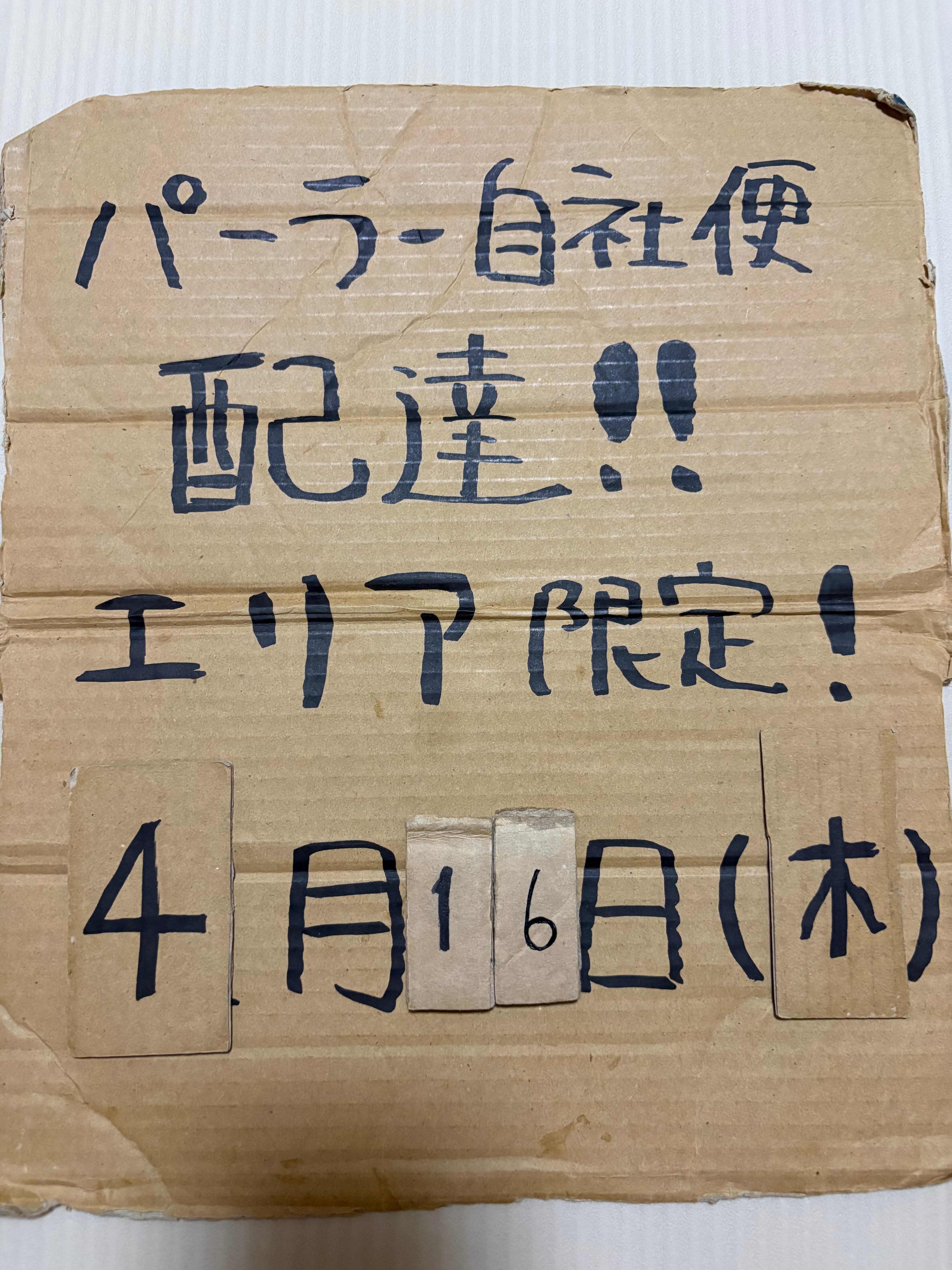 パーラーのパンを当日便で10件限定、お届けさせていただきます。配達当日の9:00くらいで受注締め切りです。
